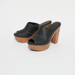 Meet the JOPLIN, a bold platform mule that exudes effortless 70s glamour. Crafted in distinct black leather, it features a sleek open-toe design that slips on with ease. Set on our Eboni wood bottom, the high block heel and platform offer confident height with lightweight stability. Finished with our signature California Construction padded footbed, the Joplin delivers standout style and all-day comfort in one striking silhouette.