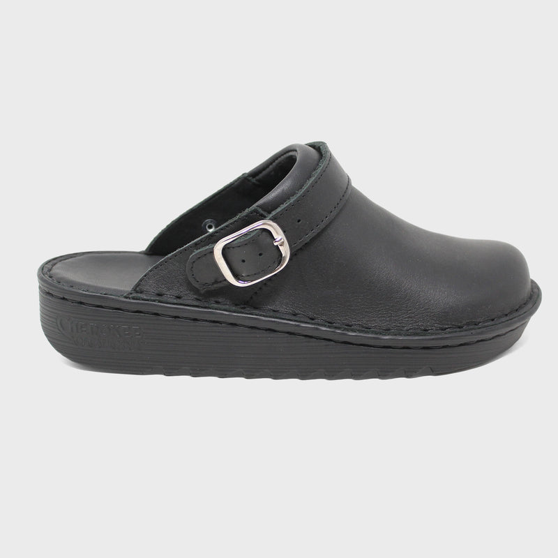 Meet the MALIBU, a modern clog with effortless ease and earthy sophistication. Crafted in black leather, this slip-on style features a clean, minimalist upper accented by a delicate adjustable strap with a golden buckle. Set on our signature Low Beep Black Bottom the lightweight platform offers subtle lift with soft cushioning underfoot. Finished with California Construction and a padded footbed, the Malibu delivers all-day comfort and laid-back polish for everything from morning errands to sunset strolls.