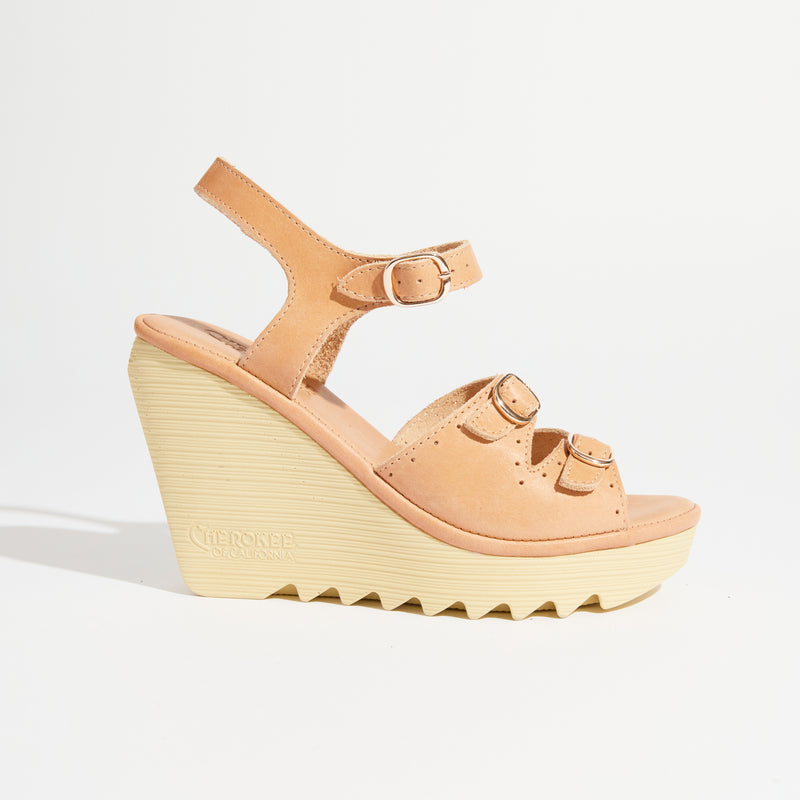 Hello STEVIE! The original 4-inch "High Beep" lightweight flexible wedge. Handcrafted from soft, vegetable tanned full-grain leather, effortlessly conforming to your foot. It features a dual-buckle adjustable vamp and ankle strap with high-quality rose gold buckles. It pairs with our original California Construction padded footbed, offering luxurious comfort and style.